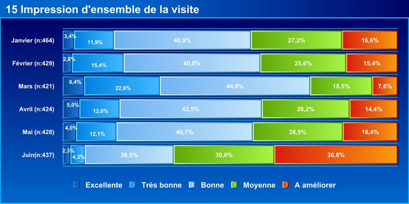 Les résultats sont exploités et analysés, question par question, ventilés selon les variables les plus pertinentes et restitués sous différentes formes :